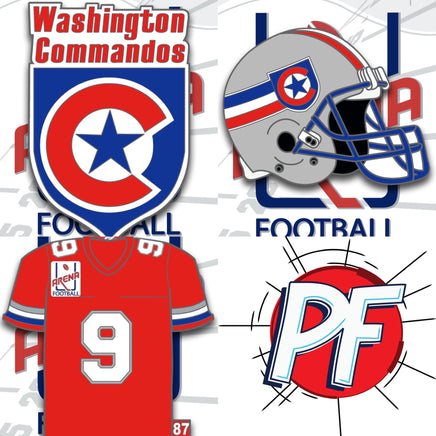 Our FOURTH in a series of pins from the old Arena Football League. We start with the original league!! Next up is the WASHINGTON COMMANDOS JERSEY!! Pins are 1.5 inches in height. Each pin comes with a collectors card for that season depicting the assortment that will be available. There is also a series buy for each team available for a discounted price.