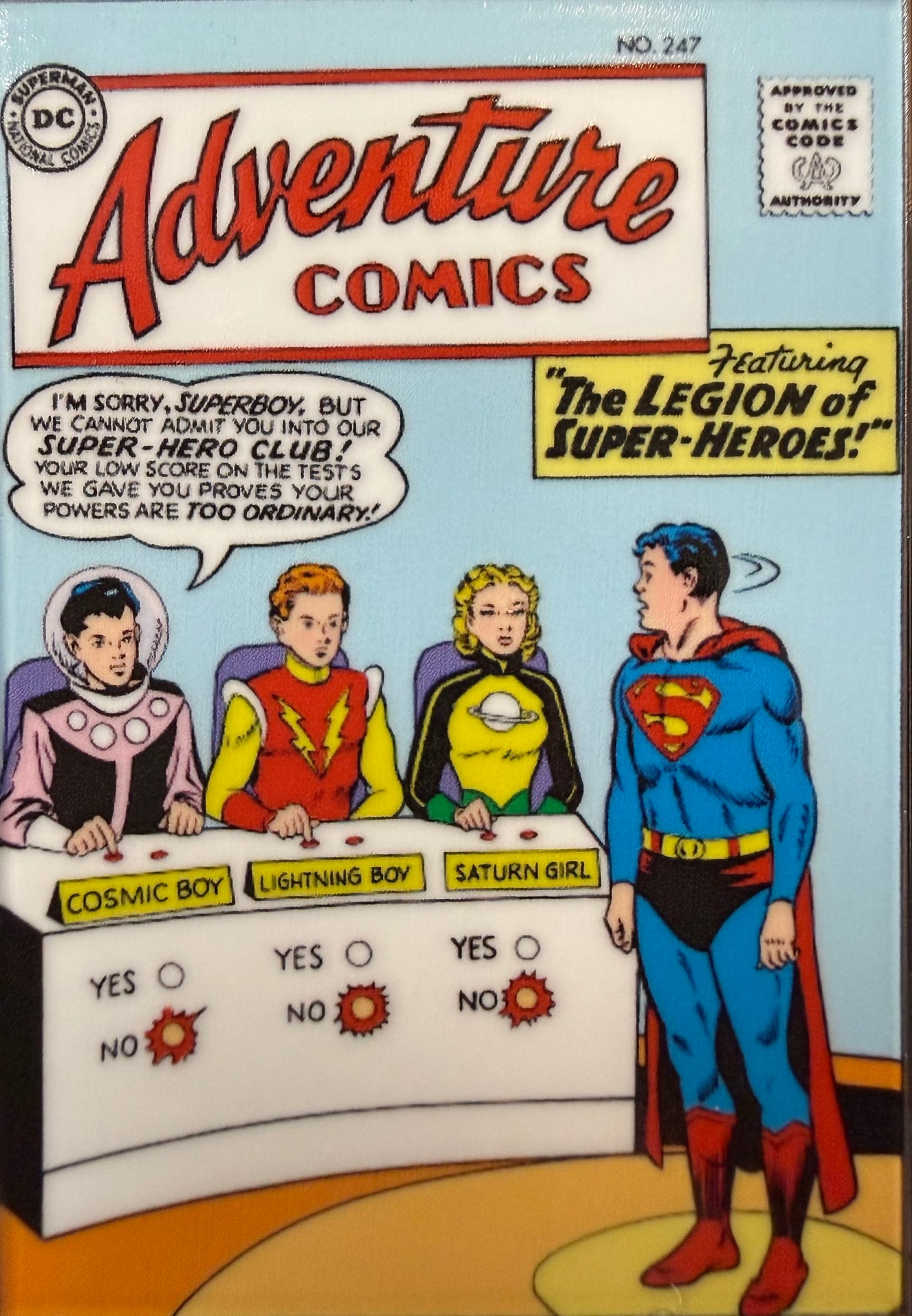 The  Legion of Super Heroes comics as they appeared in Adventure Comics. The first 10 issues are presented in this collection. Get 10 issues (11.99) for the price of 8 (14.99) at the individual price. Buy ALL 3 collections and get a Adventure Comics 3 inch pin, A Adventure Comics 6 Inch Acrylic and a Adventure Comics Key Chain (Not Pictured) in Collection 3.