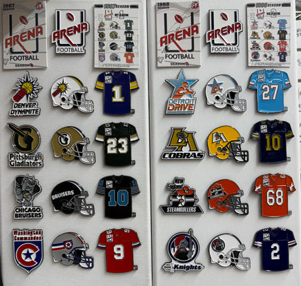 The Denver Dynamite, Pittsburgh Gladiators, Chicago Bruiser, Washington Commandos and the League Logo are available as sets and Individually too, sold separately.