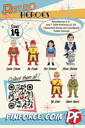 The 4th release of our RetroHeroes™ Series 14 lineup!!! He's not music to the ears of criminals!!!!! Welcome the Music Master!!!!! Want all the RetroHeroes™?? Go to the Series 14 Group page and get them at a GREAT price all at once, or purchase them individually!! Each pin comes on a Series 14 Collectors card.